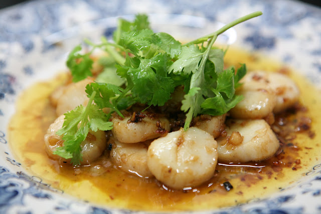 2. In a heated wok, turn down to medium heat, add butter and garlic. Fry garlic till light brown.